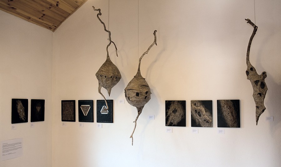For the occasion of my series of wasp paper panels and wasps’ nests travelling to Co. Clare for an exhibition as part of the Mountshannon Festival the end of May, I came up with five more panels – Appendices A to E – to extend that series of “My Friend Wasp’s Window” consisting of three initial panels and three free hanging sculptures.