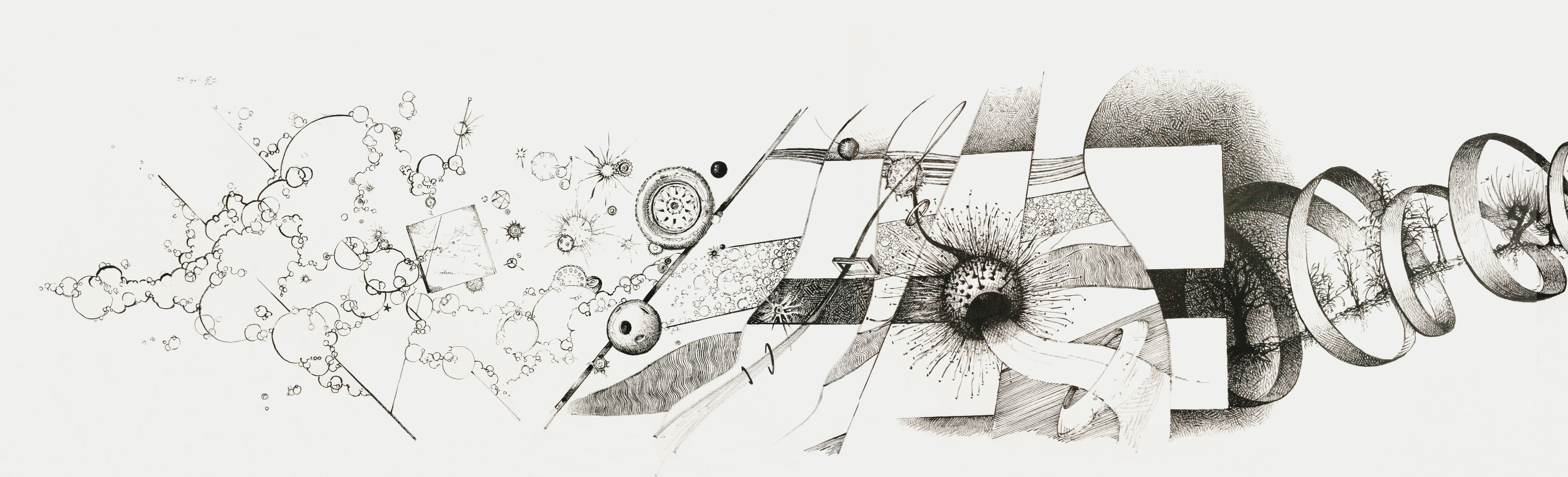 This longest drawing so far is divided into four consecutive sections to allow for acceptable resolution, as displaying the full length would require reducing the file size too much to enjoy small detail. With the slight overlap from one section to the next at least a semblance of flow can be maintained.