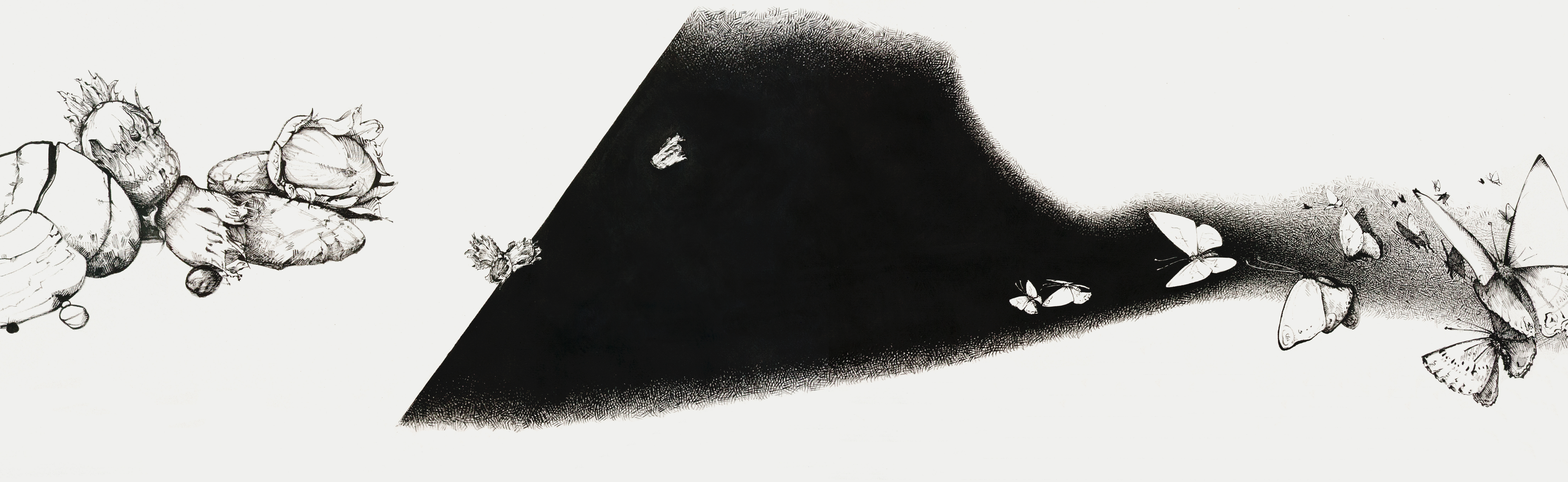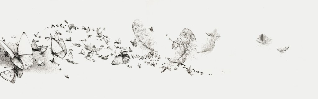 Interesting for the viewer – as well as the maker – is a factor of time playing into this, as the physical length of the paper alone doesn’t allow for reading it in the same way we look at a picture. An immediate overview isn’t possible and makes a stringing together of the imagery necessary, a sort of movie on paper, it acquires some semblance of a story (narrative would be the fashionably arty term…).